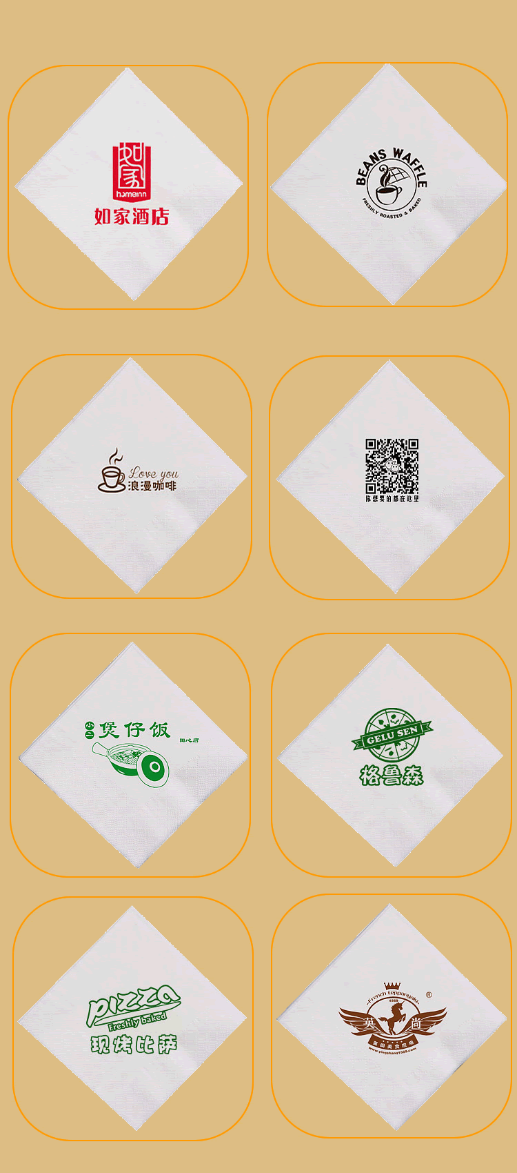 合肥億竹紙品包裝有限公司是一家專業(yè)從事各種生活用品定制的企業(yè),定制熱線:18919603840(周經(jīng)理)。公司與各大餐飲行業(yè)、酒店、加油站、學校、KTV娛樂會所、銀行、汽車4S店、房地產(chǎn)、廣告公司等客戶長期合作,業(yè)務(wù)覆蓋安徽全省。公司主營產(chǎn)品:廣告盒抽定制、餐巾紙定制、大盤紙、擦手紙、散抽紙等。有著完善的生產(chǎn)硬件設(shè)備和專業(yè)技術(shù),及長期從事的豐富經(jīng)驗。 我廠專注生活用品多年,致力于生產(chǎn)“精致,高端,綠色,健康”于一體的優(yōu)質(zhì)產(chǎn)品,以誠信、實力和產(chǎn)品質(zhì)量獲得業(yè)界的認可。目前我廠產(chǎn)品已深得寶馬汽車、重慶劉一手火鍋餐飲連鎖、萬達集團、綠地集團等眾多客戶的青睞,業(yè)務(wù)量不斷攀升。